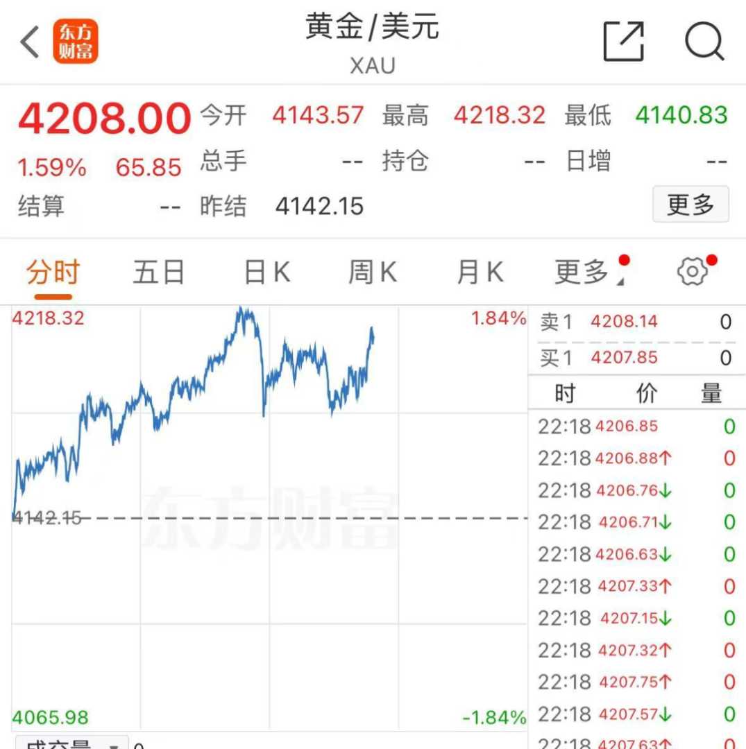 消息面上,现货黄金日内涨超1%,一度突破4210美元/盎司,续创历史新高,进一步彰显了黄金市场的投资潜力。
