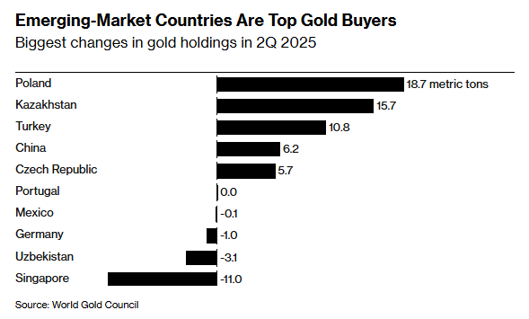其他投资者还表示,它们正密切关注于波兰、土耳其和哈萨克斯坦等持续增持黄金储备的国家。在金价持续攀升的背景下,这些国家此前大举增持黄金储备的做法,无疑被证明是明智的。