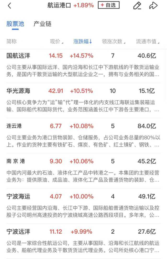 个股方面,今日早盘涨停数量为32家(不包括ST及未开板新股),封板率为66%,连板股数量为13家。成飞集成7连板,迎丰股份5连板,南京港、集泰股份、交大昂立、宁波海运、连云港、宁波远洋3连板。港口航运持续活跃,南京港、宁波海运、连云港、中远海发、宁波远洋、锦江航运涨停,成为市场亮点之一。