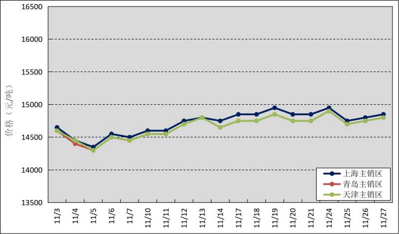 国内主销区:11月,国产全乳标准胶上海市场平均价格14721元/吨,环比下跌302元/吨,最高价14950元/吨,最低价14350元/吨;青岛市场平均价格14658元/吨,环比下跌227元/吨,最高价14900元/吨,最低价14300元/吨。天津市场平均价格14661元/吨,环比下跌281元/吨,最高价14900元/吨,最低价14300元/吨。
