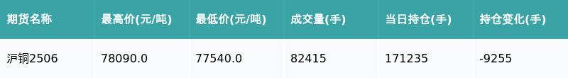 南财金融终端数据显示,上海期货交易所沪铜主力合约收跌0.63%,收盘报77820.0元/吨,日内资金流出7.78亿元。沪铜期货价格波动对多个行业有重要影响,投资者需密切关注后续走势。