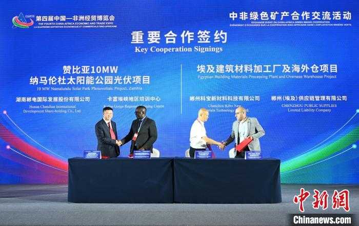 第四届中国—非洲经贸博览会的中非绿色矿产合作交流活动在长沙举行,赞比亚、津巴布韦、乌干达等国官员表示期待与中国企业深化合作,推动矿业转型。中国企业通过技术创新,推动非洲矿业安全高效、绿色低碳发展,现场签约了一批重要合作项目。