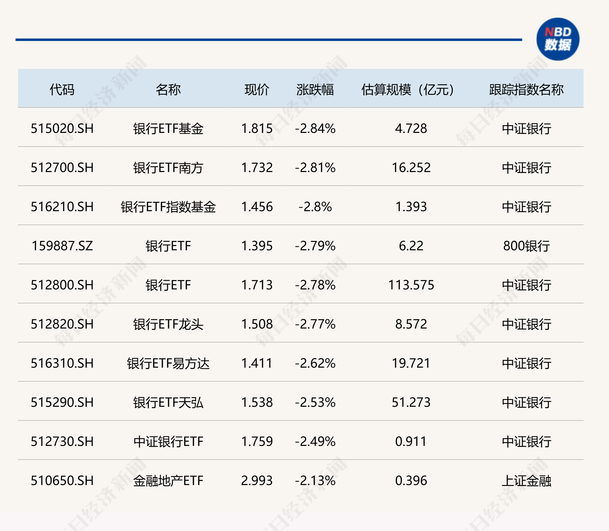 下跌方面,银行相关ETF跌超2%。