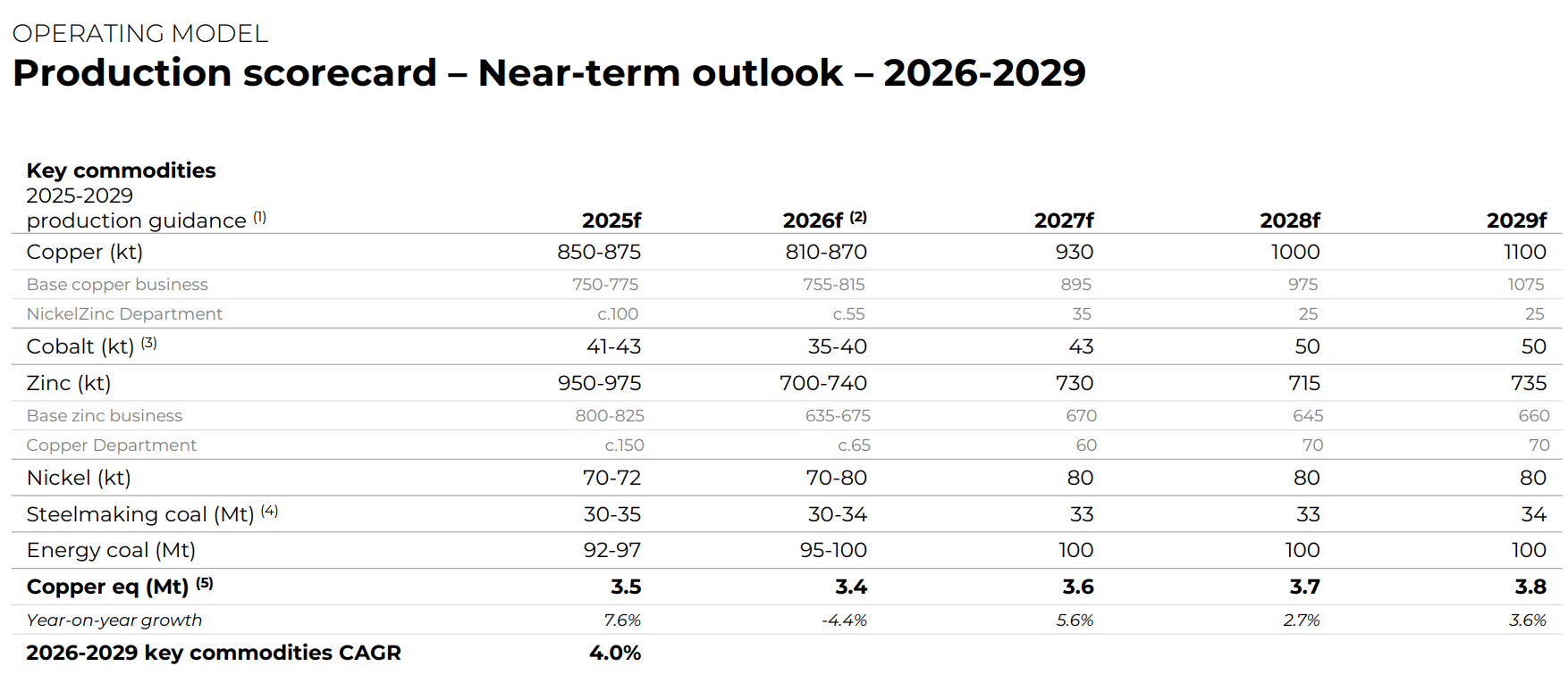 嘉能可还将2026年铜产量预期下调至81-87万吨,较此前预测低了10%,主要原因是智利Collahuasi矿山事故影响。公司也下调了明年的锌和钴产量目标。