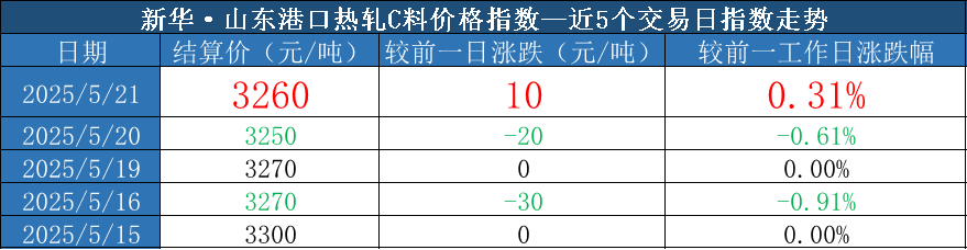 同时,新华·山东港口热轧C料价格报3260元/吨,较前一交易日上涨10元/吨,涨幅0.31%。热轧C料市场的这一微涨趋势值得关注。