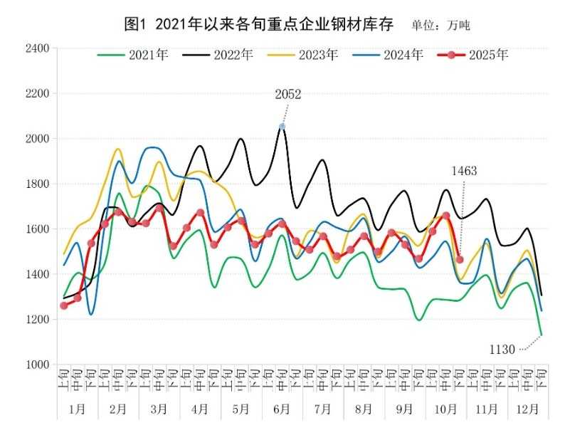 2025年10月下旬钢铁企业钢材库存量动态分析