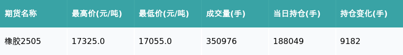 南方财经报道,上海期货交易所橡胶主力合约收跌2.15%,收盘报17100.0元/吨,日内资金流入1.71亿元。详细指标见下表,橡胶期货市场值得关注。