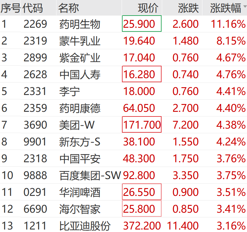港股早间集体高开,上午短暂走低后拉升回暖。截至发稿,恒生国企指数涨超2%,恒生指数、恒生科技指数涨超1%;药明生物飙涨约11%,领涨恒指成份股。
