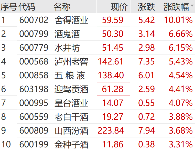 另外,白酒股上午持续拉升,舍得酒业封涨停,酒鬼酒、水井坊、泸州老窖、五粮液等均有明显涨幅。