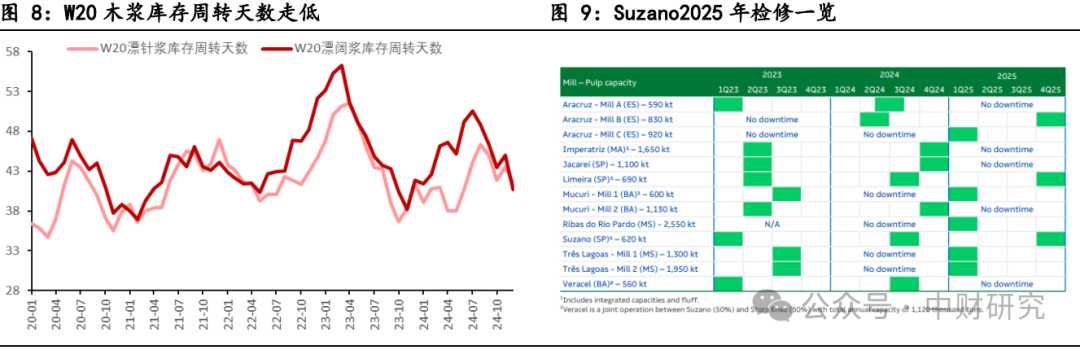 1.检修+海外需求支撑报价提涨。海外浆厂库存压力减轻,检修计划支撑报价。巴西Suzano纸浆业务毛利率高,中国作为全球最大浆消费国接货乏力,但南美三国向亚洲其他地区出口提升,浆需求具有韧性。