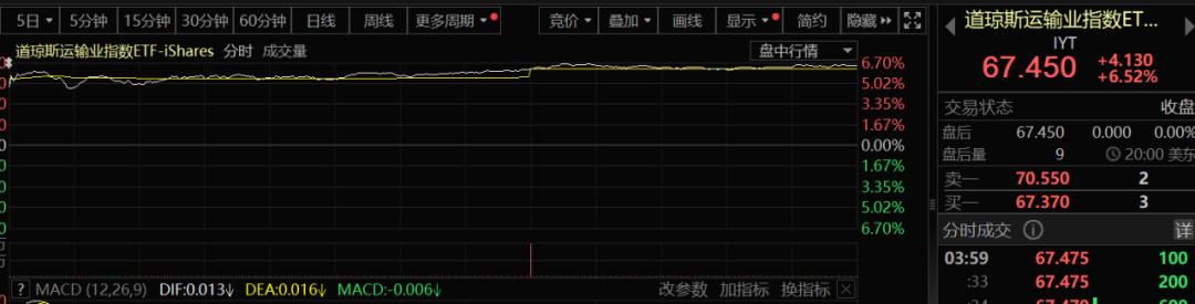股票市场上,道琼斯运输指数暴涨6.52%。A股市场上,国航远洋、华光源海等股票一度大涨,港股运输股也出现结构性大涨。