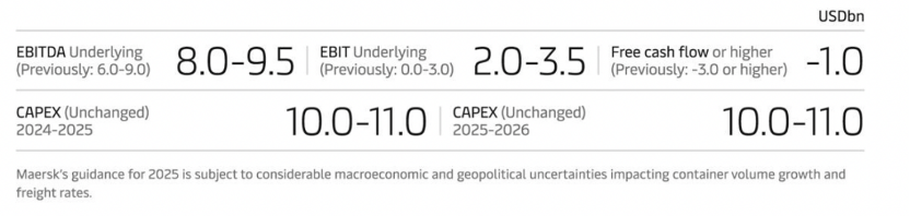 马士基最新公布的2025年全年业绩指引(数据来源:马士基)