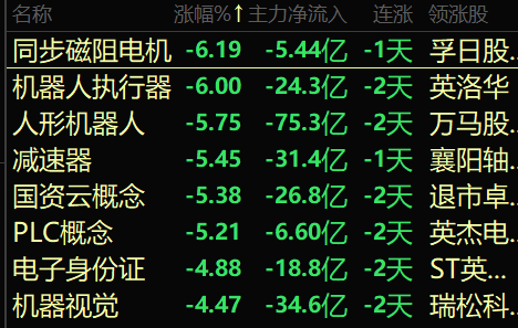 A股市场热门题材纷纷熄火,光模块、人形机器人、高速铜连接、算力等概念指数大幅下跌超过4%。光模块个股中,太辰光、德科立跌幅超过10%。人形机器人概念股中,中大力德跌停,该股年初至昨日收盘涨幅超过200%,埃夫特-U、伟创电气、禾川科技等跌幅均超过10%。