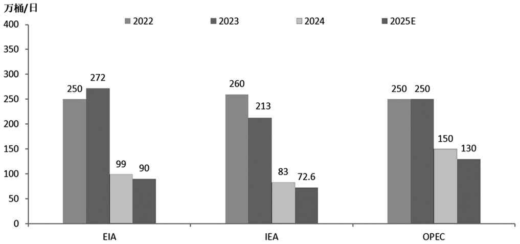 2024年6月初,OPEC+会议释放增产信号,但此后增产计划多次被推迟。12月,OPEC+会议明确将减产措施延长至2026年年底,并计划在2025年4月起的18个月内逐步增产,于2026年9月完全恢复产能。然而,OPEC+在3~4个月内的产量增幅超过计划增量的一半,这一情况超出市场预期,加大原油市场供给过剩的预期。