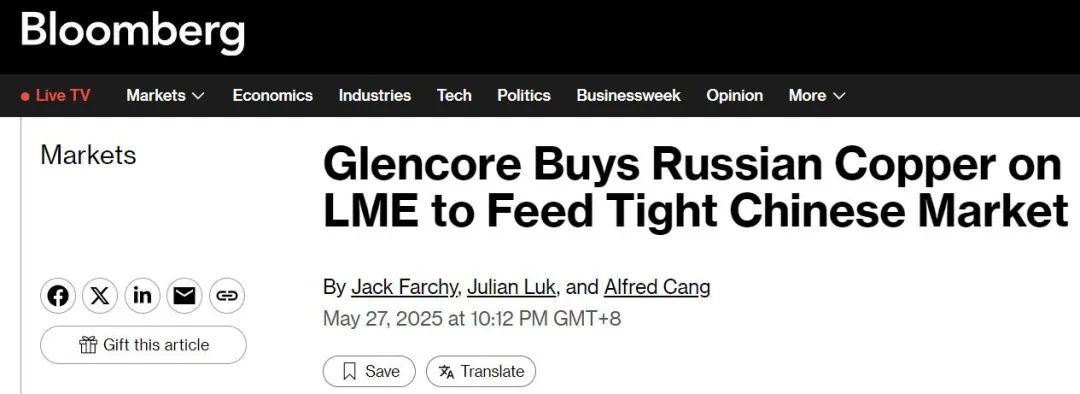 嘉能可大量购买LME的俄罗斯铜