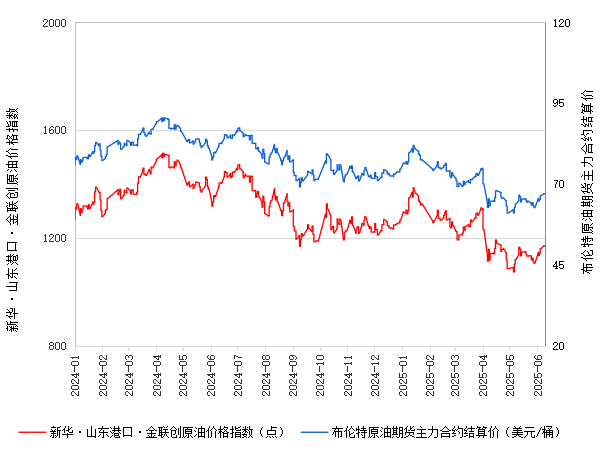截至2025年6月10日,新华·山东港口·金联创原油价格指数报1168.23点,较前一日下跌0.26%。进口原油即期价格为70.62美元/桶。山东港口进口原油综合到岸贴水估价也有所下跌,反映了近期原油市场的微妙调整。