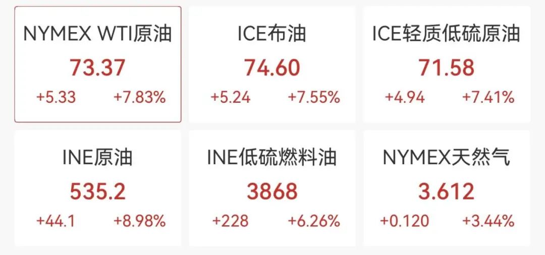 受这一消息影响,国际油价持续上涨,美油和布油均涨幅超过7%。