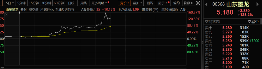 以色列空袭伊朗,受益最大的标的无疑是山东墨龙港股。该股午后一度飙涨超160%,并带动其他油气股上行。同时,A股市场油气板块亦大幅拉升,多家公司封死涨停板。