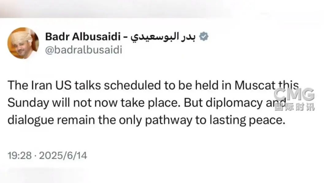 当地时间14日晚间,阿曼外交大臣巴德尔表示,原定于15日举行的伊朗和美国的第六轮核问题谈判将不再举行。他强调,外交与对话是实现持久和平的唯一途径。