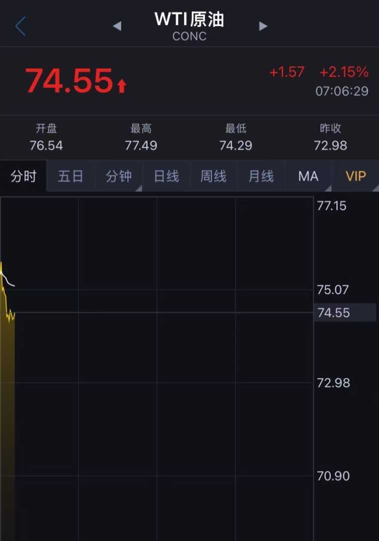 16日亚盘,WTI原油期货周一高开逾6%后回落,现报74.55美元/桶,市场密切关注中东局势对油价的影响。
