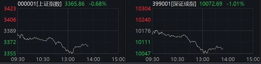 午后,A股持续走弱,沪指、深证成指、创业板指一度均下挫跌逾1%,截至发稿,跌幅有所收窄。