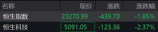 港股下挫,截至发稿,恒生指数跌逾1.8%,恒生科技指数跌超2.3%。
