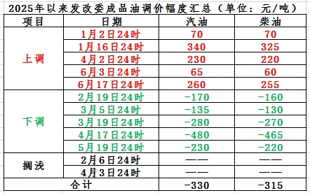 2025年以来,国内成品油零售限价已经历十二轮调整窗口,“五涨五跌两搁浅”。调价后,国内汽、柴油价格每吨较去年底分别下跌330元、315元。