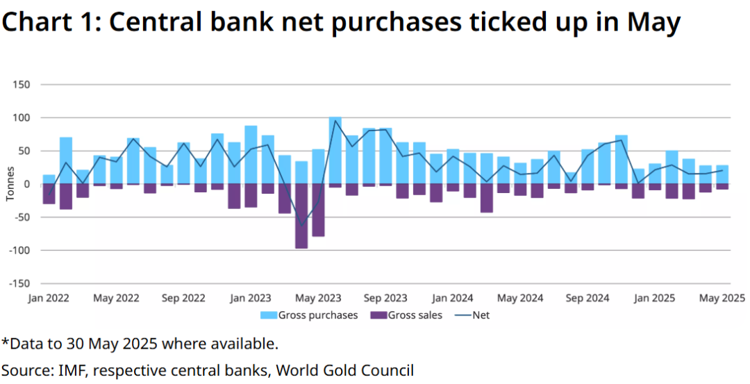 同时,国际贵金属期货小幅收涨,COMEX黄金期货收涨0.11%报3346.5美元/盎司,COMEX白银期货收涨0.14%。黄金价格上涨受美元指数回落、美国财政赤字担忧等因素推动。世界黄金协会报告显示,5月全球央行净购金量达20吨,中东局势升级可能强化黄金对央行的战略吸引力。
