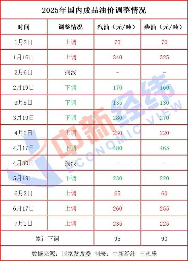 今年以来,国内成品油价已经历十三轮调整,若本轮油价下调,则将终结连续三轮上调走势,2025年调价格局将变为“六涨六跌两搁浅”。根据“十个工作日”原则,下一轮成品油零售调价窗口将在2025年7月29日24时开启。