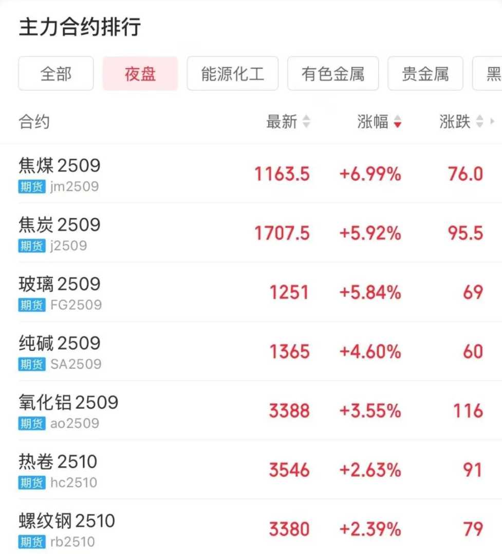 29日国内期市夜盘开盘,多个热门品种价格大涨。截至收盘,焦煤期货主力合约涨近7%,焦炭、玻璃期货主力合约涨近6%,纯碱期货主力合约涨超4%。