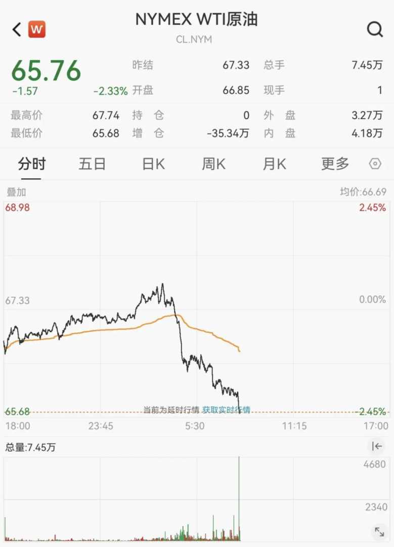 8月4日晚间,国际油价直线下挫,截至发稿,布伦特原油期货跌幅扩大至2.00%,报68.28美元/桶;WTI原油期货跌2.33%,报65.76美元/桶。