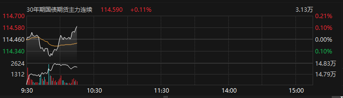 国债期货全线上涨,30年期主力合约涨0.11%,报114.590点。其他期限合约也均有所上涨。