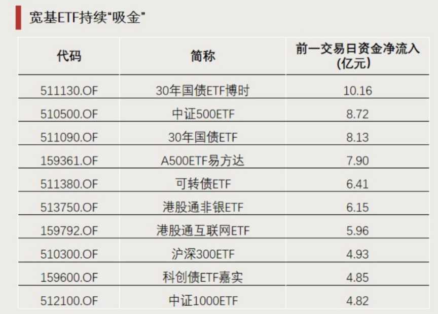 7月23日,净流入额居前的ETF还有沪深300ETF(510300)、中证1000ETF(512100)等多只宽基ETF。股票型ETF方面,港股通非银ETF、港股通互联网ETF也获较多资金净流入。