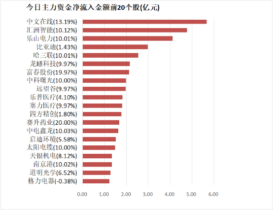 4. 中文在线主力资金净流入5.69亿元居个股之首