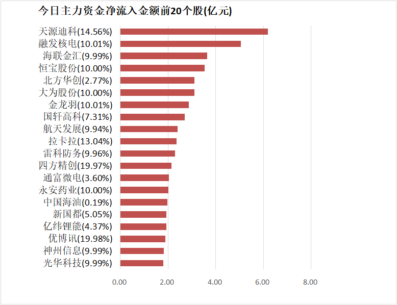 今日A股市场主力资金开盘净流出20.2亿元,尾盘净流入24.08亿元,A股市场全天资金净流入21.17亿元,资金流向呈现积极态势。