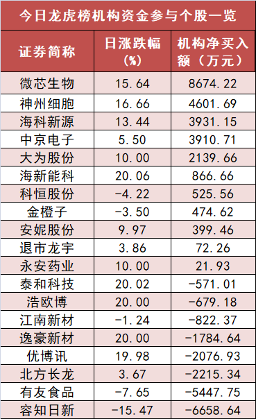 盘后龙虎榜数据显示,机构现身多股,其中微芯生物等股票呈现机构资金净买入,容知日新等股票呈现机构资金净卖出,市场活跃度较高。