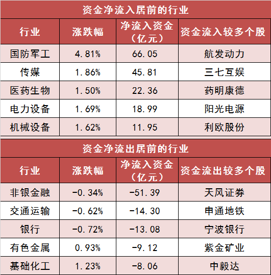 3.国防军工等行业实现净流入,行业表现亮点纷呈
