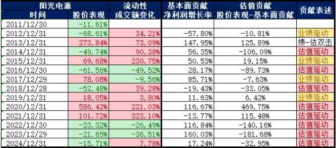 再来看弹性更大的科技股——阳光电源,也是估值驱动占多数。