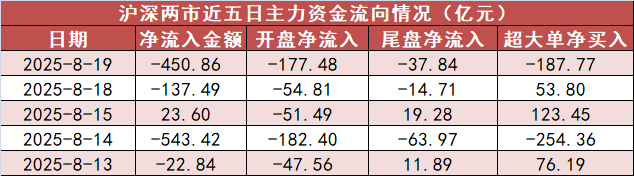8月19日A股市场指数分化,主力资金净流出450.86亿元,沪深300净流出99.23亿元。食品饮料行业净流入居首,中油资本资金流入领先。龙虎榜显示机构抢筹多股,市场关注焦点集中在主力资金动向及行业表现。