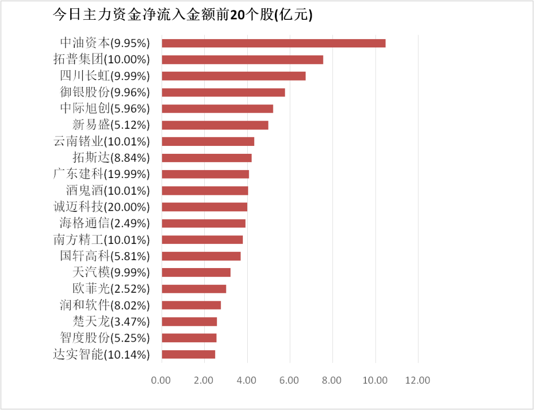 (注:此表为主力资金净流入统计,与上一张表及下一张表的机构净买入统计口径均不同)
