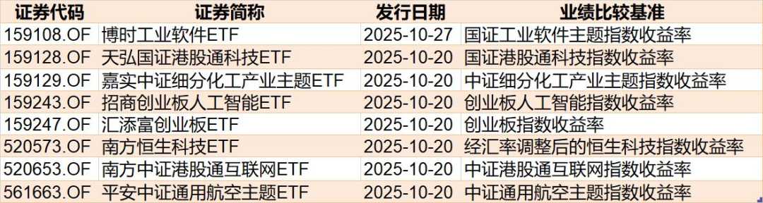 基金重仓股向来是投资者关注的热点,但是主动管理型基金的重仓股浮出水面,通常都有一定的滞后性,而ETF布局的标的却是非常明确的,通过跟踪新上市ETF,通常可以发现近期热点个股,新上市ETF带来的增量资金也值得关注。目前有4只ETF披露下周上市,跟踪标的为港股通消费、上证580、卫星产业、民企300等。目前有8只ETF披露下周发行,跟踪标的有通用航空、港股通互联网、恒生科技、创业板指、创业板人工智能、化工、工业软件等。