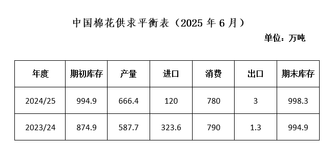 国内促消费、稳外贸政策成效显著,纺织品服装内需稳中有增、出口保持一定韧性,带动纺织用棉需求略有恢复,但受配额、税率、价差等因素影响,进口量持续低迷。据中国棉花协会预测,2024/25年度全国棉花消费量780万吨,较上期上调10万吨,同比下降1.3%,进口量120万吨,较上期下调10万吨,同比下降62.9%,产量666.4万吨,同比增13.4%,期末库存998.3万吨,同比增0.3%。
