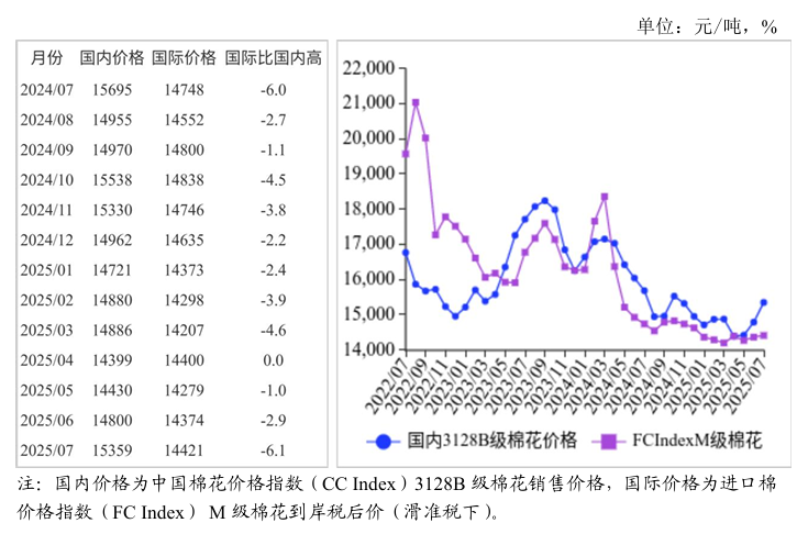 7月国内外棉价走势:国内震荡,国际受关税拖累