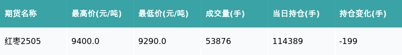 为了更全面地了解红枣期货市场的最新动态,以下提供了相关指标的具体数据表格,以供投资者参考和分析: