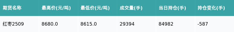 南财智讯6月3日电,据南财金融终端盘后期货数据显示,郑州商品交易所的红枣主力合约当日收跌0.23%,收盘价报8625.0元/吨,日内资金流出达到891.35万元,市场交投略显谨慎。红枣期货作为农产品期货的重要品种,其价格波动一直备受市场关注。以下是相关指标详细表格:
