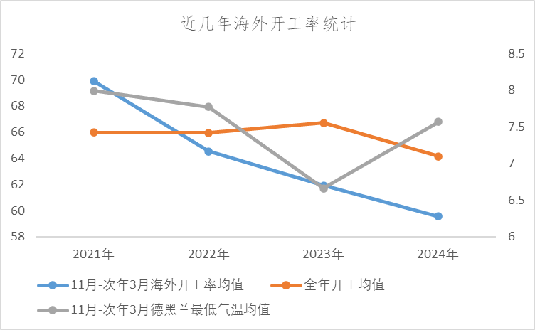 进口供给方面,从目前船表信息看,短期内进口量不会出现明显收缩,但中期而言,进口收缩的可能性较高,我们对近几年海外装置的开工率进行统计后发现:自21年以来,海外装置在11月至次年3月份的开工率均值逐年下降,并且开工率下降的时间节点也在逐年前移,但全年的开工率均值并不存在这一趋势。这可能与伊朗为主的甲醇货源国家冬季天然气短缺有关,比如伊朗就会在冬季施行天然气民用政策,气制甲醇装置开工因此受限。进口收缩幅度逐年增加、节点持续前移导致去年年底港口库存就出现了超预期去化,带动盘面和现货价格持续上涨。今年不排除此趋势延续的可能,这样目前高库存的情况也会得到有效缓解。