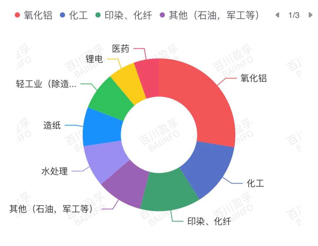 其中,在烧碱的下游需求中,氧化铝需求占比最大,达到30%。因此,氧化铝的需求对烧碱有较强的议价能力。