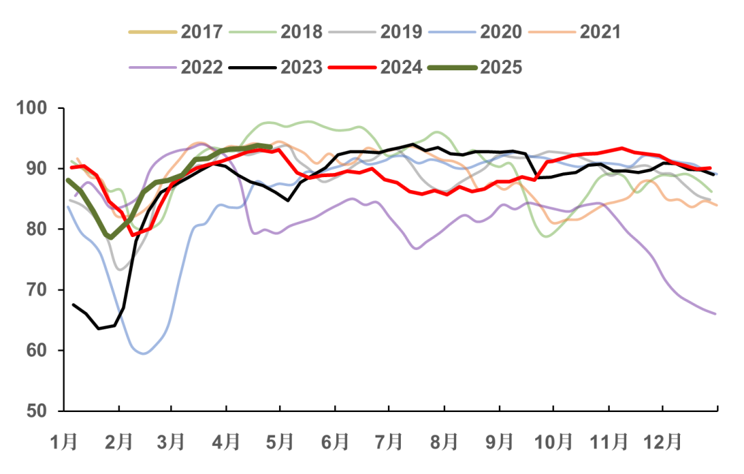 PTA估值已至历史极低位置。传统原料检修季本应支撑上游原料端利润扩张,但油价走弱和悲观需求压制估值水平。3月起,PTA上游利润持续下行,期货盘面价格承压。TA-5SC价差跌至1800下方,创历史新低。但PTA长期低利润运行,估值压缩空间有限。二季度季节性检修将至,下游聚酯工厂负荷坚挺,修正原料过低估值。上游利润将迎来修复,关税争端预期缓和提供良好时机。